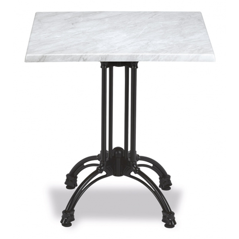 Con el pie negro de aluminio fundido con cuatro patas y distintas barras del suelo al tablero, para el interior del bar o cafetería.