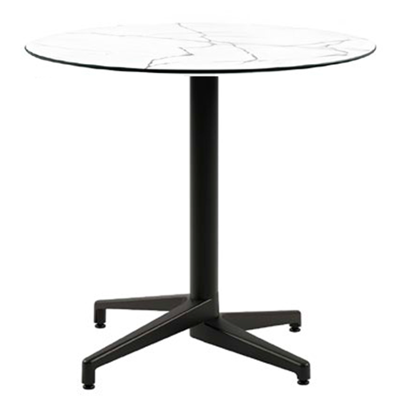 Mesa ideal para terrazas de cafeterias con tablero redondo.