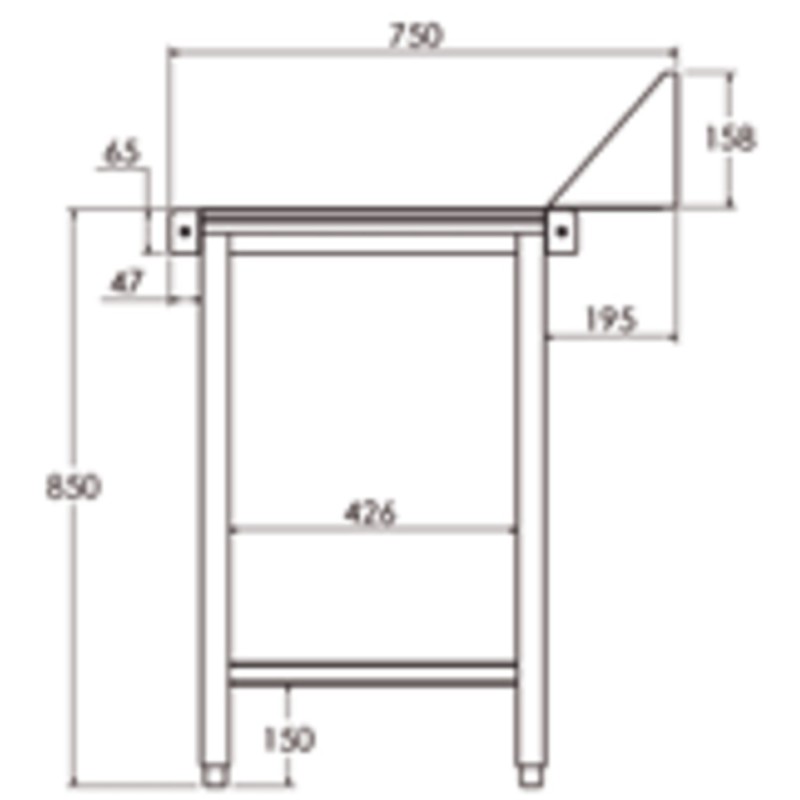 Ficha de Mesa de acero para lavavajillas