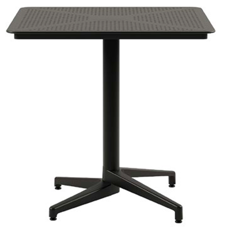 Mesa cuadrada con tablero de uso exterior con materiales resistentes