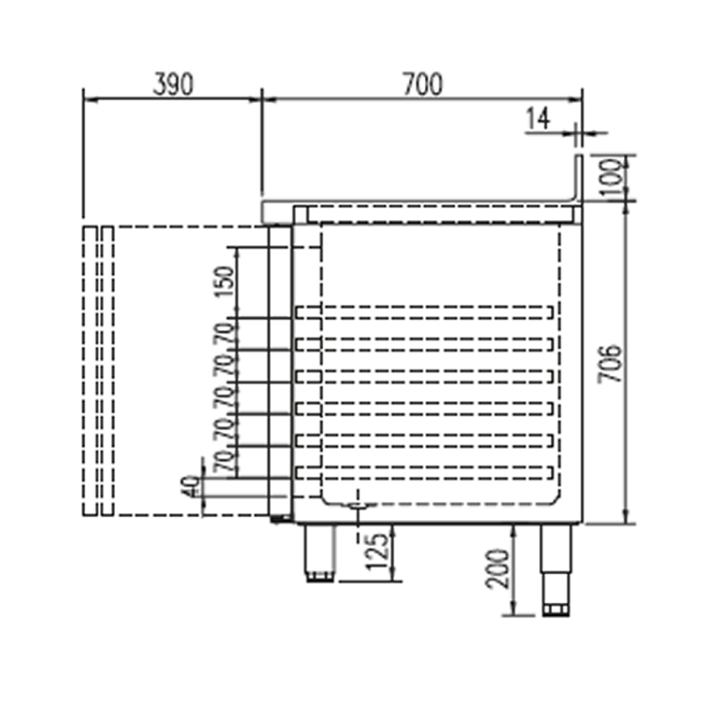 Mesa Fria 3 Puertas GN1/1 Fondo 70 cm. 14-MRG-180