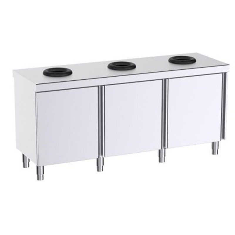 Mesa acero con puertas y orificios para la clasificación de residuos.