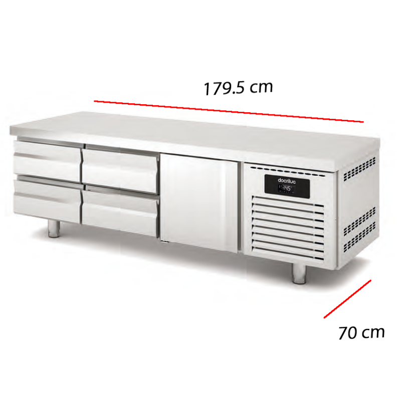 Parte inferior dotada de 4 cajones y una puerta refrigeradas.