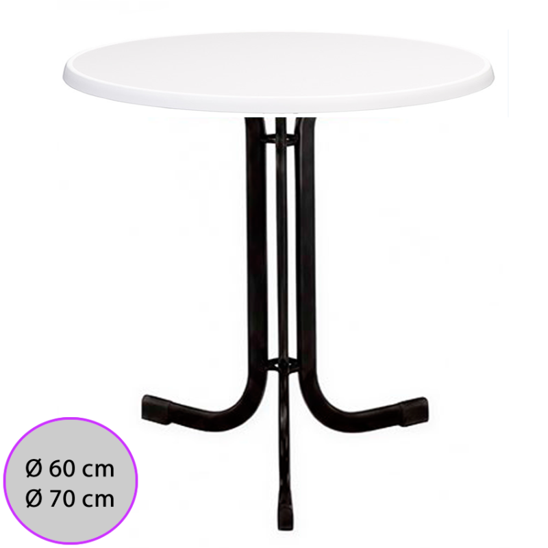 Mesa con pie central para bar con tablero de Werzalit redondo.