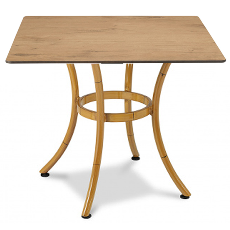 Mesa de cafetería cuadrada color caña y sobre compacto. Mod. Plan