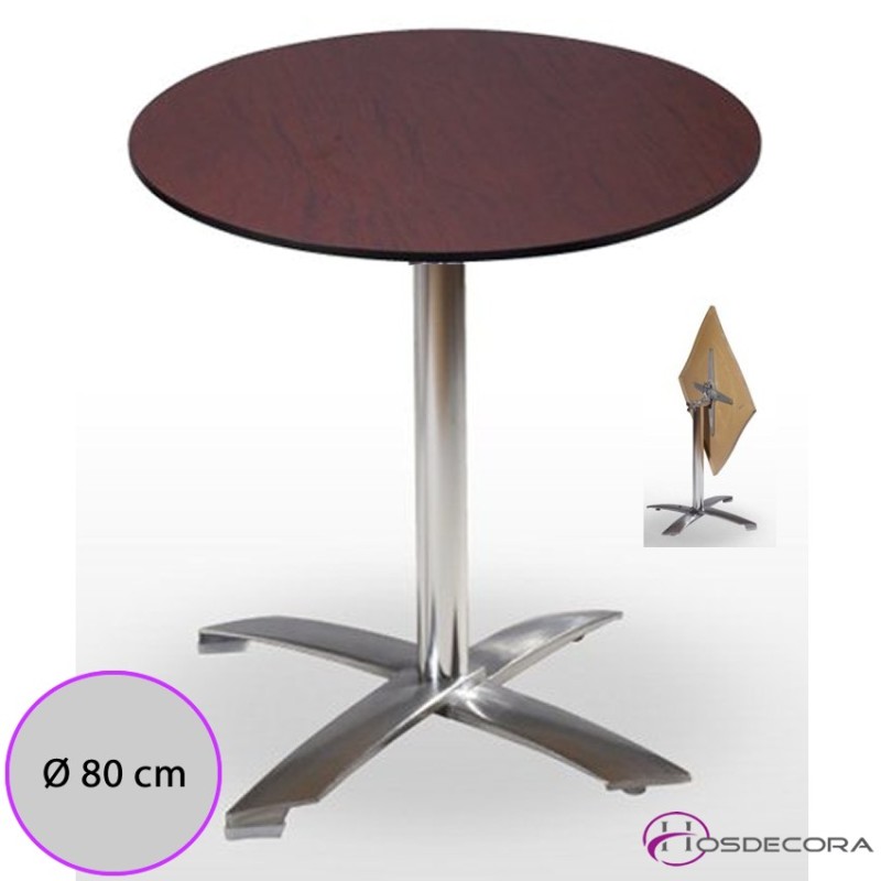 Mesa abatible Sober de bocaterías con tablero redondo Compacto y armazón fundición aluminio acabado brillo.