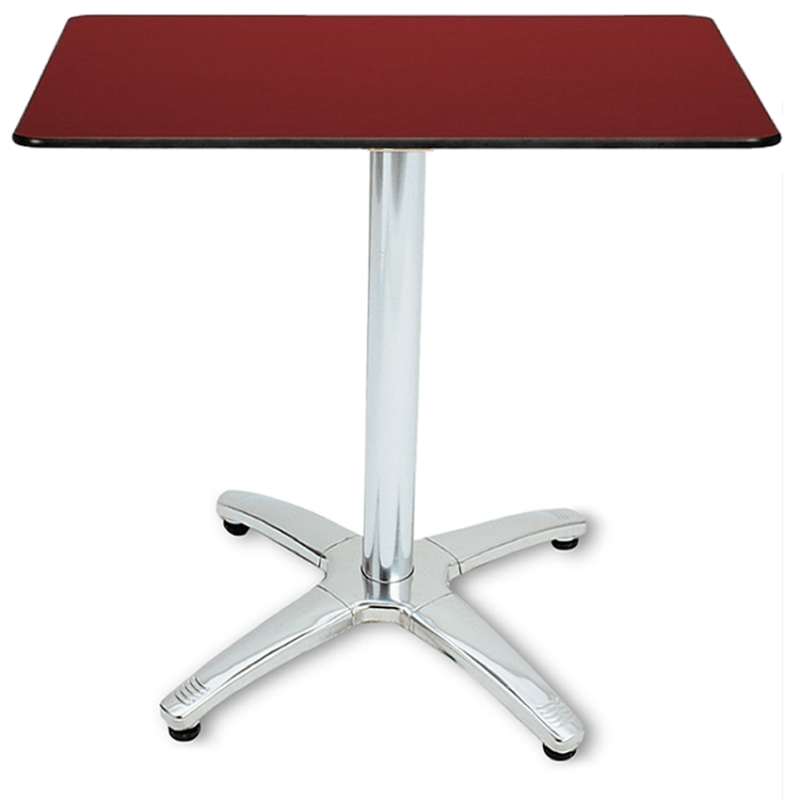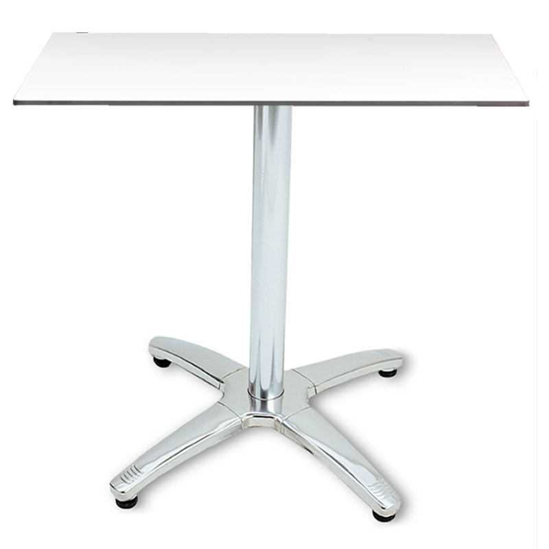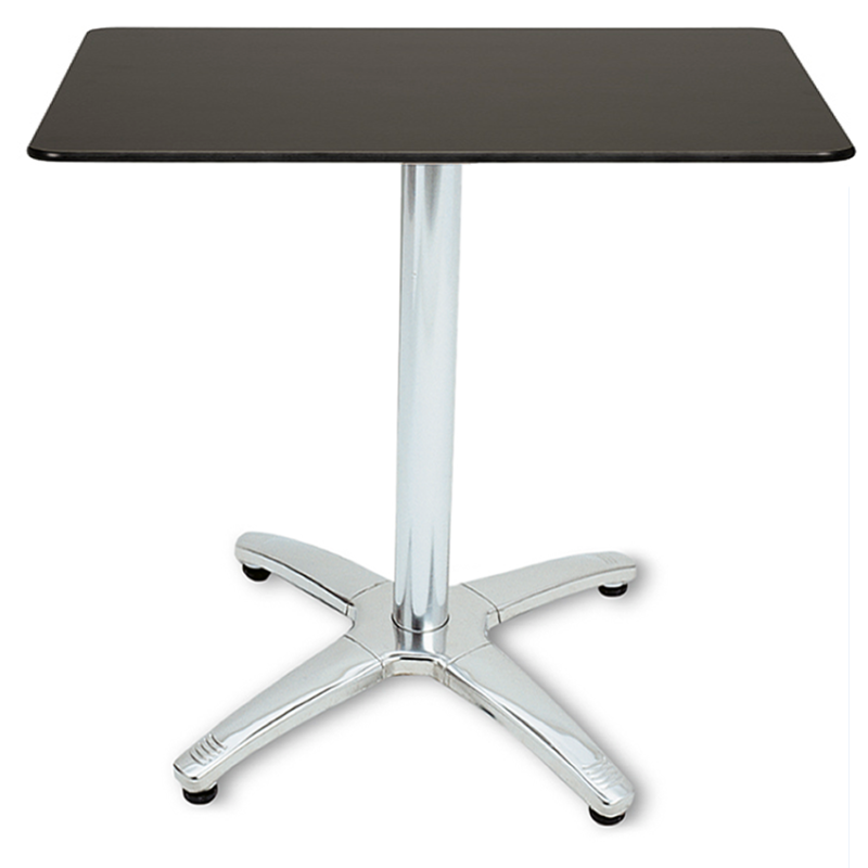 Mesa de cafetería Vigo con tablero compacto cuadrado y estructura aluminio brillo.