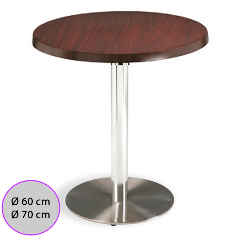 La mesa Anievas tiene unas dimensiones de 60, 70 u 80 cm de diámetro, y cuenta con una altura de 74 cm.