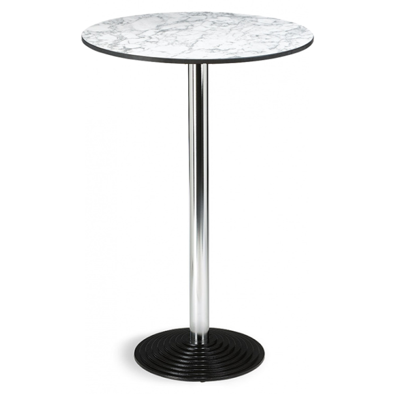 Mesa alta Lameiro para barras de bares con tablero de 60 en compact, con tubo central acerado y base de hierro fundido.