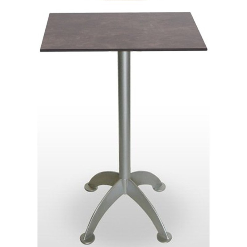 Mesa alta Nijar para bocaterías con tablero cuadrado Compacto y armazón fundición aluminio acabado gris.