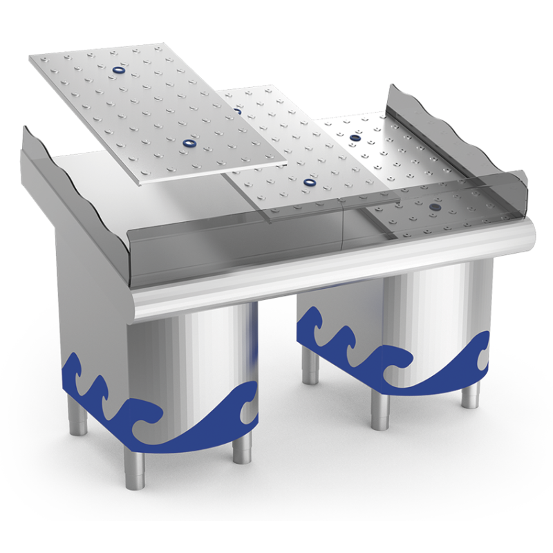 Mostrador de pescaderías y marisquerías en acero inoxidable AISI 304.