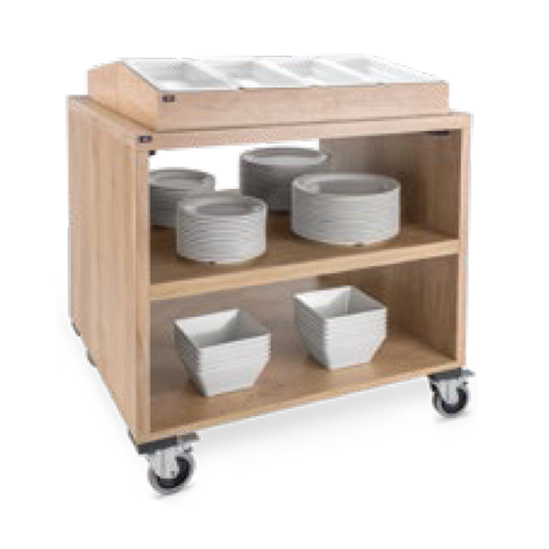 Carro porta-cubiertos con ruedas para buffet en madera. P90813