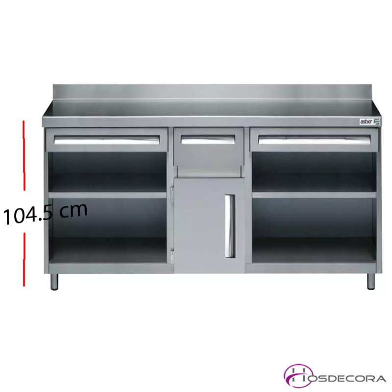 Fabricado en inoxidable con patas regulables para adatarse al suelo y orificio para cables de lasmáquinas.