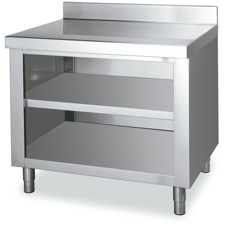 Mueble de acero inoxidable abierto con un estante para cocinas de hostelería con encimera mural de fondo 70 cm
