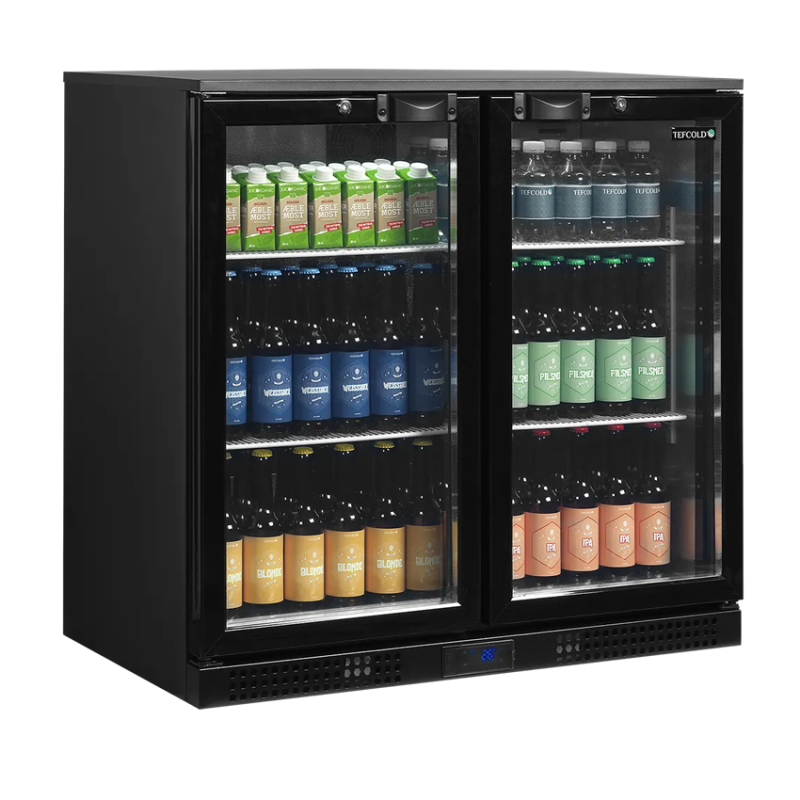 El refrigerador de backbar cuenta con una puerta batiente reversible con doble acristalamiento templado, que le permite