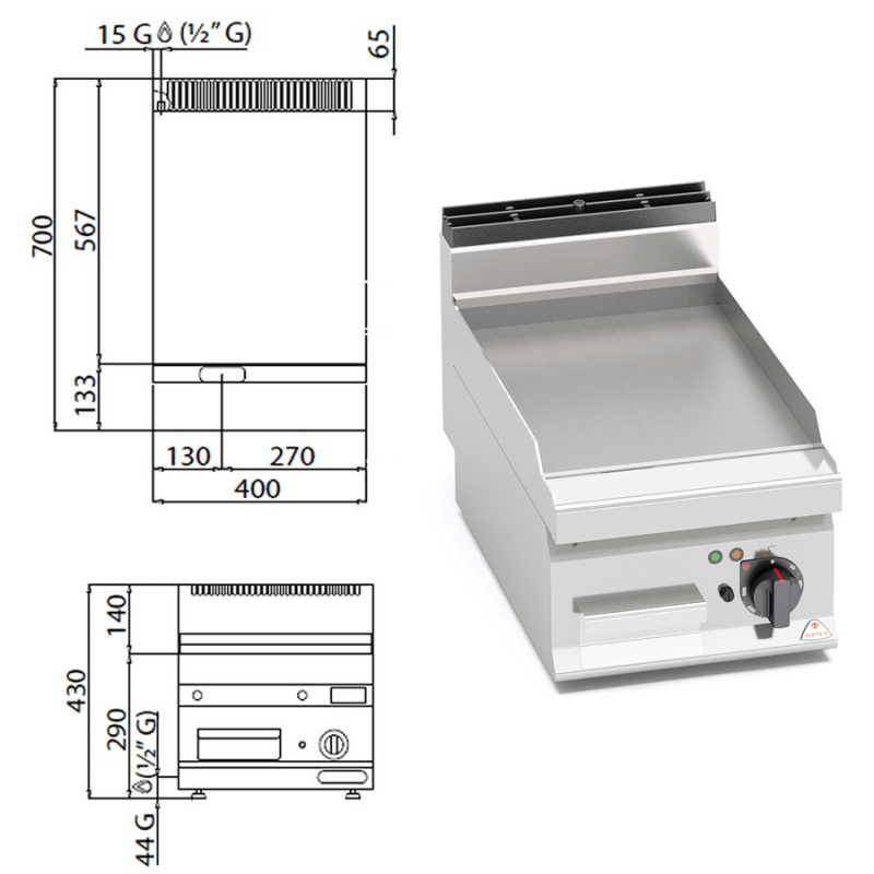 Fritop Eléctrico de asar Acero 4.8 Kw- 15 mm. 03-E7FL4BP