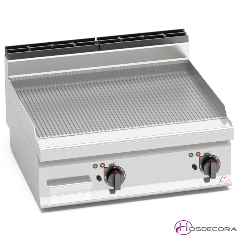Plancha de acero Acanalada Eléctrica para hostelería que permiten marcar carnes y embutidos en restaurantes.