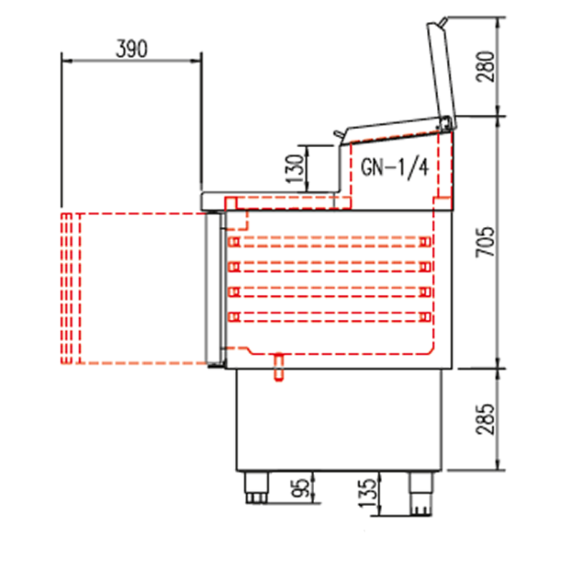 - 5 cubetas GN 1/4 x 150 fondo ( no incluidas )