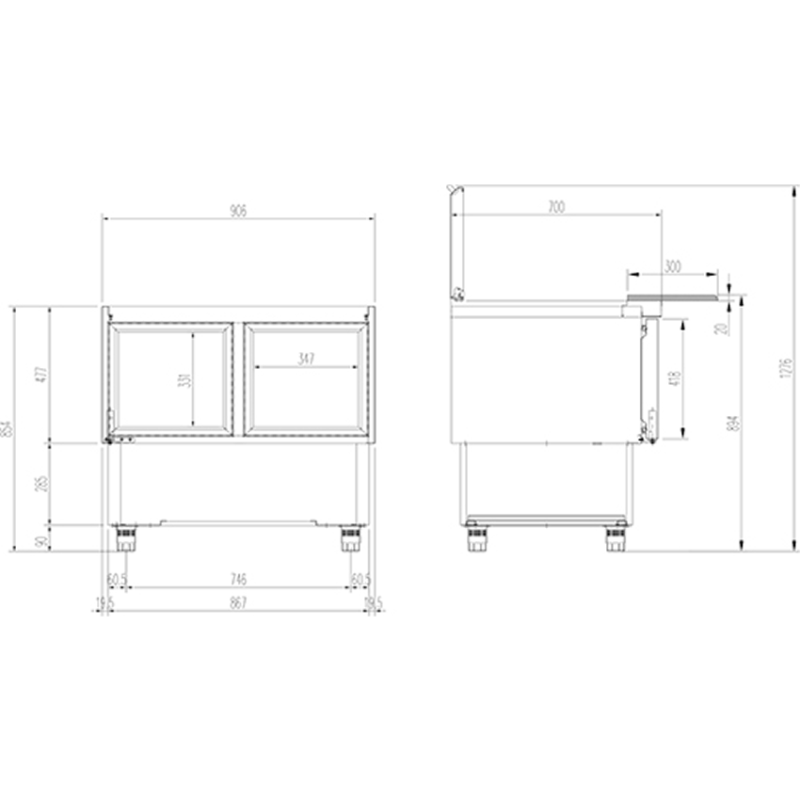 - 2 Cubetas GN 1/1 y 3 GN 1/6 Fondo 200 mm. no incluidas.