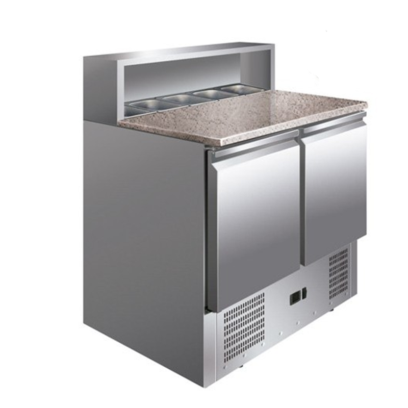 Mesa refrigerada encimera de granito con mayor superficie de trabajo y mayor capacidad de almacenaje.