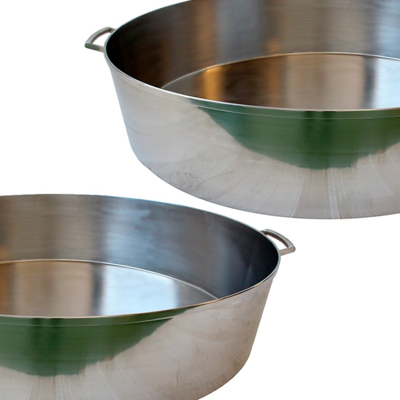- Dimensiones de la Cacerola recta de 42 litros: Diámetro 60 cm Altura 15 cm. -Asas 2. (85 raciones)
