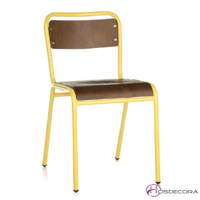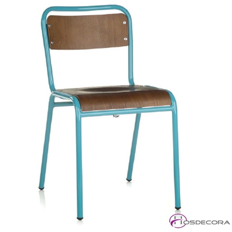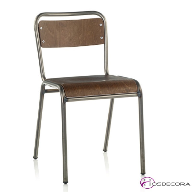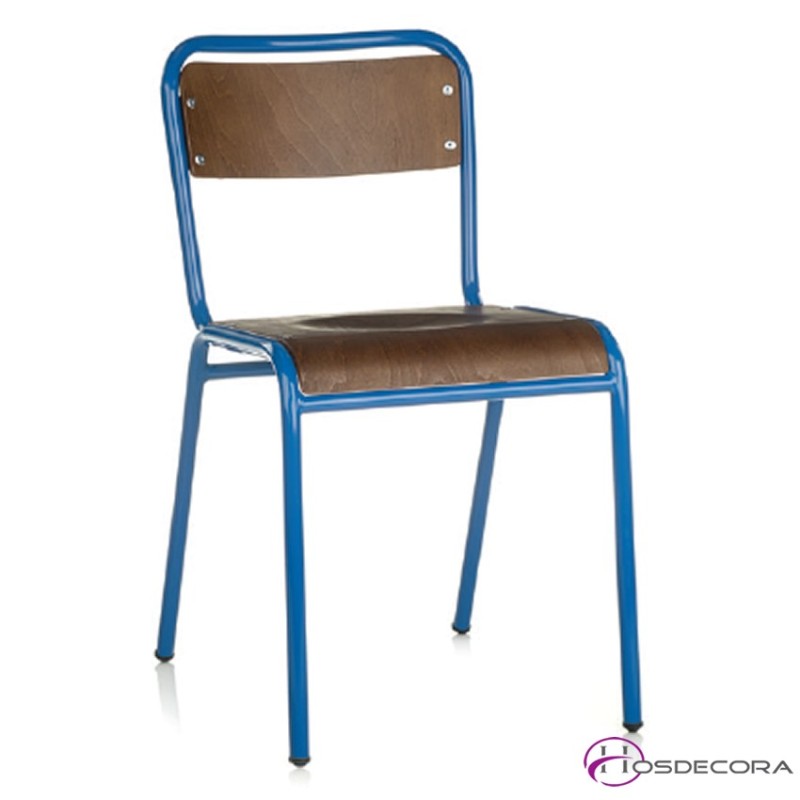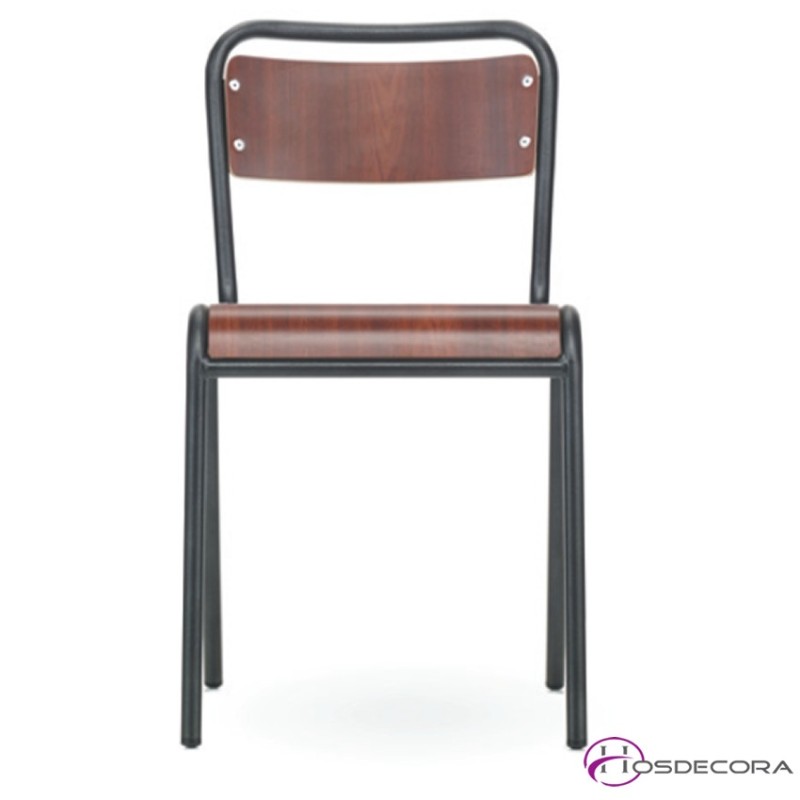El asiento y respaldo es de formica madera. La estructura se puede adquirir en negro, gris plata o acero dulce.