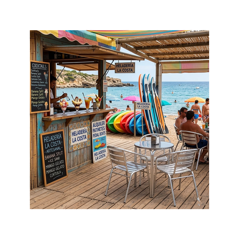 Fabricada en aluminio apilable con tubo de Ø 30. para los veladores o terrazas