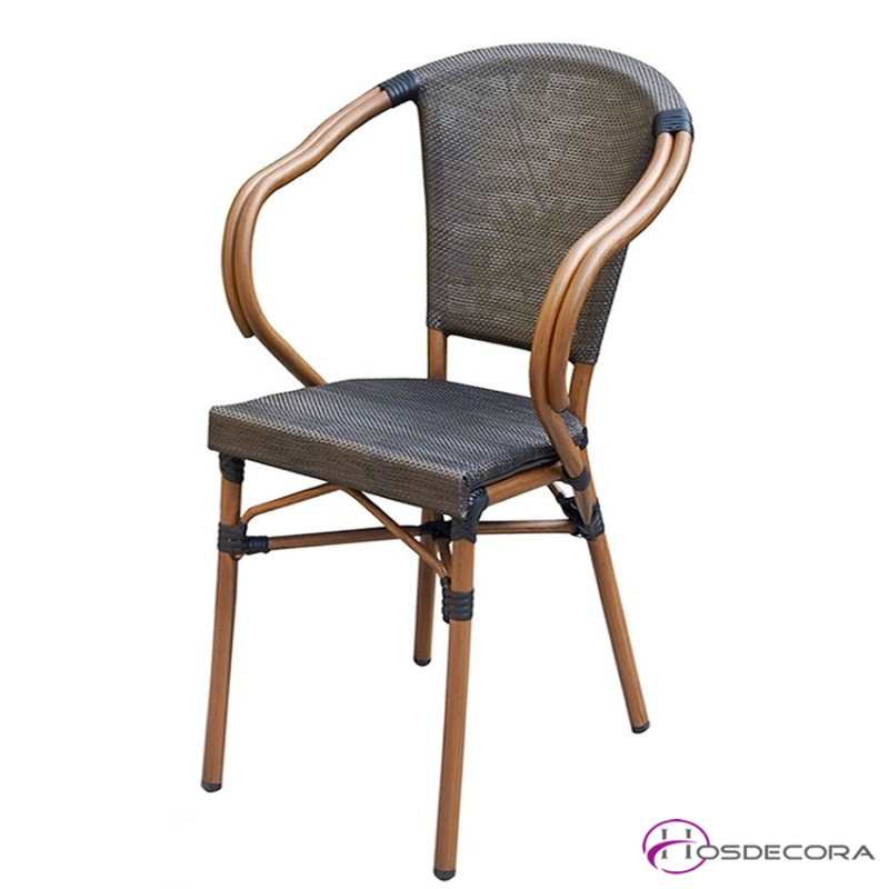 - Con estructura de aluminio, asiento y respaldo textilene en color marrón oscuro o gris.