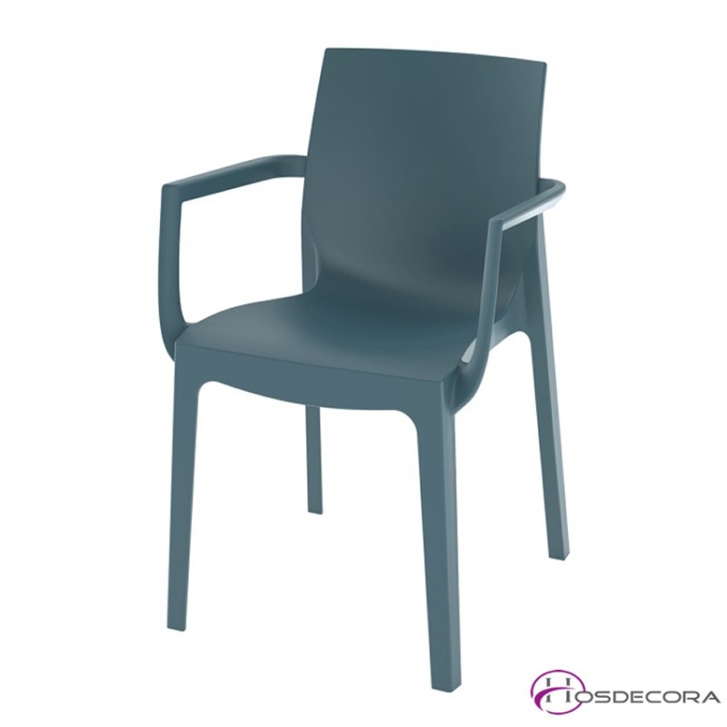 - Armazón, asiento y respaldo. Monobloc. Polipropileno y fibra de vidrio inyectado a gas.