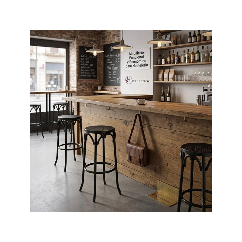 Taburete de barra asiento de rejilla. Mod. Oviedo