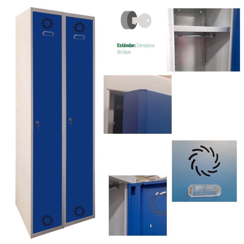 Color estándar: Cuerpo gris RAL 7035 y puerta azul RAL 5010.