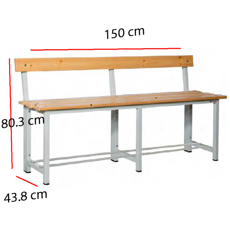 Banco con Respaldo Pino de Vestuarios 150 cm 96-BANC-79325