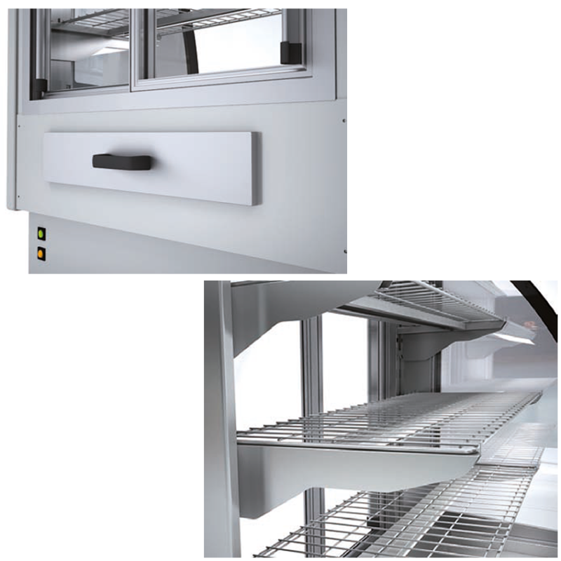 - Largo 95 x Fondo 73 x Alto 138 cm. Consumo 1683 W. Puertas correderas 2. Exposición 1.27 m2.