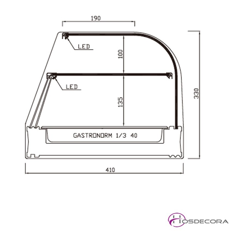Mod C: Largo 193 cm. Capacidad 8 GN 1/3