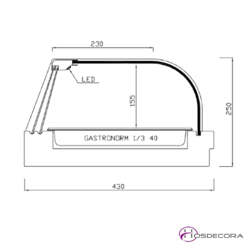 -Largo 123 cm. 6 cubetas GN 1/3.-Largo 159 cm. 8 cubetas. -Largo 194 cm. 10 cubetas.-Largo 264 cm. 14 cubetas.