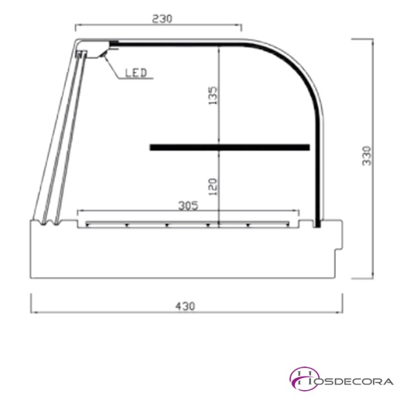 Cubetas Gastronorm 1/3 h40 o parrillas incluidas en la vitrina 450x280.