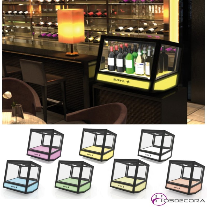 Base completamente retro iluminada, con posibilidad de iluminación con RGB lo que la convierte en la vitrina más camaleónica jamás construida.