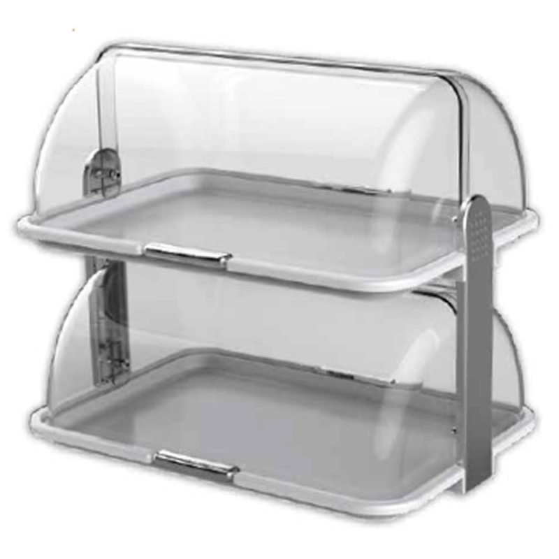 Expositor para bollería, pan, y alimentos que no necesitan refrigeración en servicio en buffet y catering de hoteles y camping.