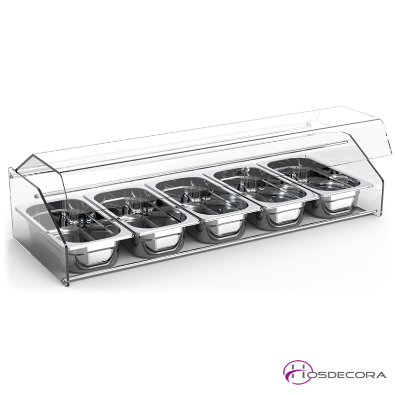 Capacidad para cubetas 5 GN 1/3. No includas.