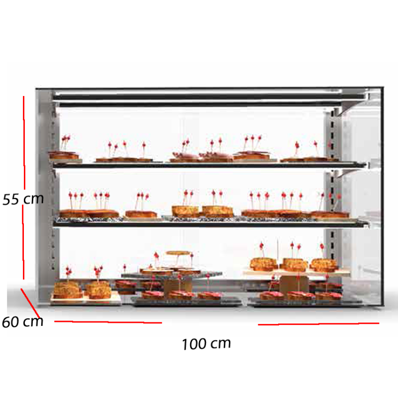 Modelo B: Largo 100 x Fondo 60 x Alto 51.5 - Con Luz - Estante 90 x 36 cm.