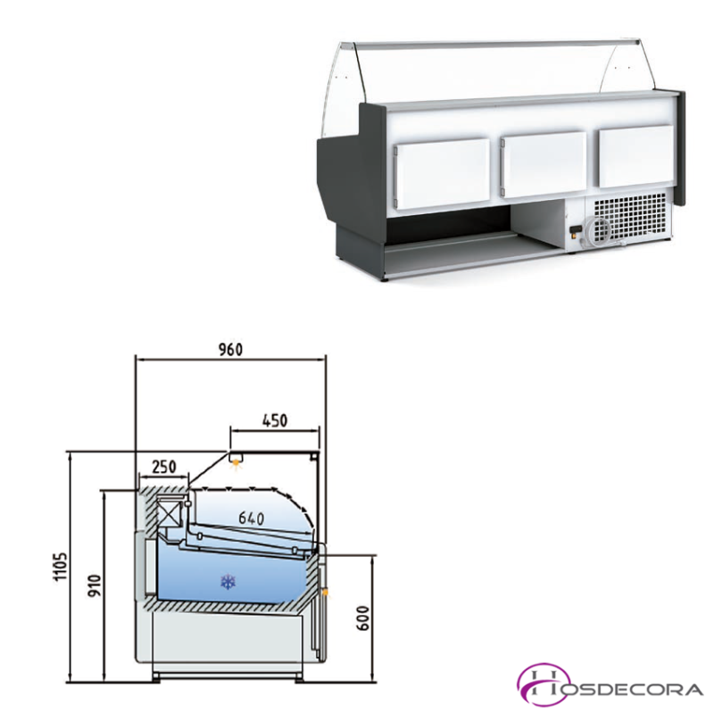 Vitrina exposición para tiendas de pastelería, charcutería y lácteos. VE-9-RCB