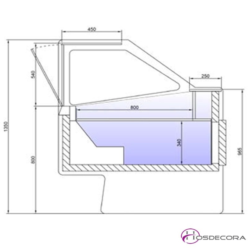 Vitrina pastelera refrigerada con reserva. Fabricado en acero inoxidable.Encimera y plano de exposición en acero inoxidable.